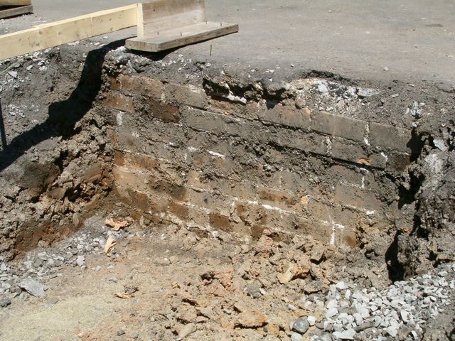 Part of retaining wall 212 feet long, built in 1917. Uncovered during extrior work. Bricks were from SOISSON brickyards located just above Kingston.